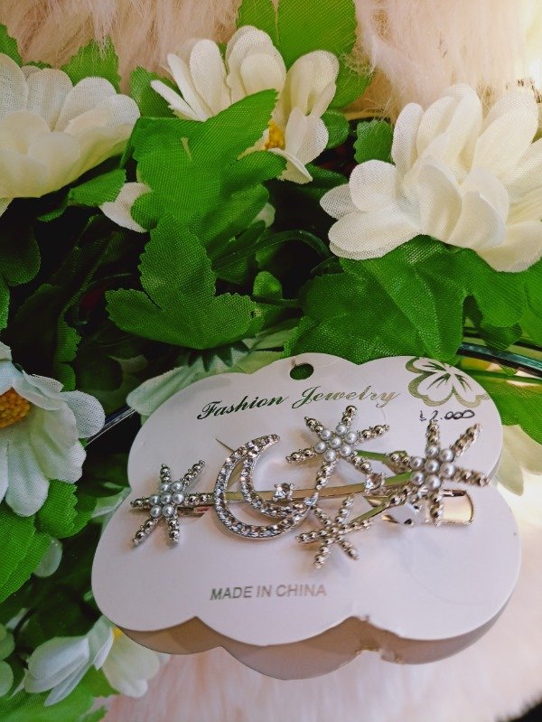 Pico de estrellas y luna con perlitas blancas